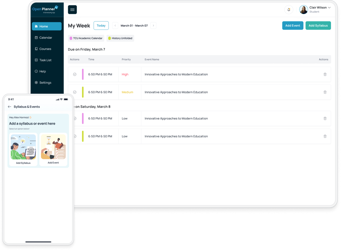 Start your semester off on the right foot with our all-in-one student planner. Automatically extract due dates from your syllabus, create tasks, and track progress with Open Planner!